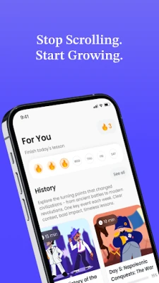 Tired of mindlessly scrolling? Time to end doomscrolling and turn those spare moments into real growth. MyGrowth gives you quick, fun microlearning lessons you can read or listen to anywhere.