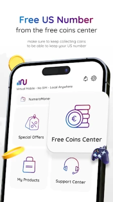 To get a free USA number to use as a second line, collect coins from the Free Coins Center – make sure to keep collecting coins to be able to keep your US number.