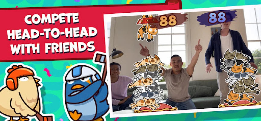 Party Fowl is also super simple to set up. Just set your device down so that you and your opponent are visible in the front-facing camera. For a more immersive experience, screencast your device to a TV.