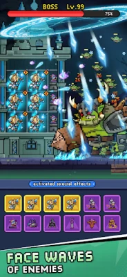 Fight against massive waves of enemies, each with unique abilities and characteristics. Overcome swarming foes with your hero combinations and strategic placements!
