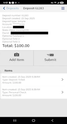a new deposit for one or more checks, take a picture of the check(s), enter the dollar amount, and enter data related to the payments received.
