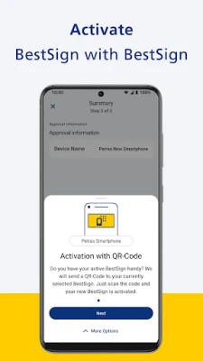 The Postbank BestSign app is a separate app for securely authorizing orders in online banking. The app only includes the BestSign security procedure. Create and activate BestSign once, then you are ready for authorizing.