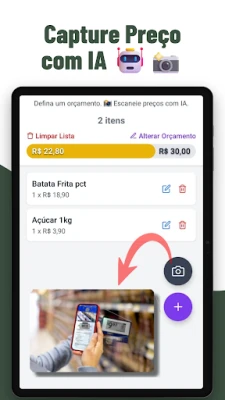 Chega de digitar! Aponte a câmera para a etiqueta de preço do produto e deixe nossa inteligência artificial extrair o nome e o valor para você. Economize tempo e evite erros de digitação.