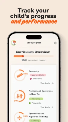 - See at-a-glance insights into your child's mastered and struggling areas