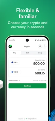 The Ramp Network app is built for both web3 natives and newcomers who want a simpler way to move between fiat and crypto. Buy Bitcoin, Ethereum, USDC, and other supported assets, swap across chains, and manage your crypto in a self-custodial wallet, all in one app.