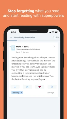 Quickly synchronize your highlights from Kindle, Apple Books, Instapaper, Pocket, Medium, Goodreads, and even paper books. Then start building a daily review habit using the app and daily email. By reviewing your highlights every day, you'll retain dramatically more and you'll finally stop forgetting all the details from books you just finished!