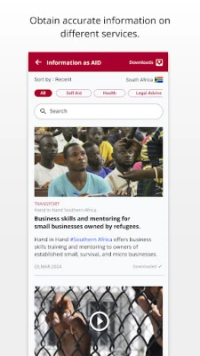 Offline features such as; selected articles from Information as Aid, points of interest from humanitarian services, personal documents or Contact list can be saved and accessed without internet.