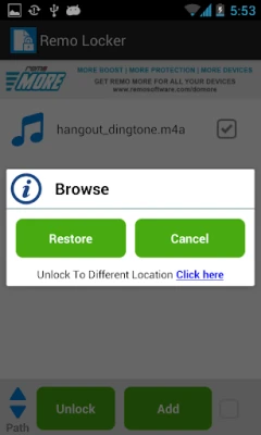 Always hesitate in sharing your Android Phone with known people, strangers or guest users? Protect your files against unauthorized access by using the freeware Remo Locker app. This application hides the selected files and no one will ever know that the files exist. If you have any private or confidential data like pictures, videos, documents and audio files that you want to hide, then Remo Locker is right for you.