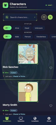 Note: This is a fan-made app and is not affiliated with Adult Swim or the creators of Rick and Morty. All character and show information is sourced from the public Rick and Morty API.