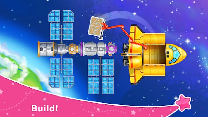 For curious kids whose curiosity goes beyond the Earth we’ve created this educational Spaceship game. Embounding both fun and useful facts about the surrounding world, the kids game is a true jewel for parents who seek helpful children applications for their toddlers and preschoolers. Kids are in charge of a huge space station but before they start managing it they meet enjoyable tasks in our game for kids. Move the shattle, use specific mechanics to build spaceships and rockets out of parts-puzzles! Maintain your vehicles at a perfect condition so wash your space vehicles, fix starships at the technical station for kids and refuel them at the fuel station. Finally, full of all emotions and joy - launch the spacecraft from the cosmodrome in game for kids!