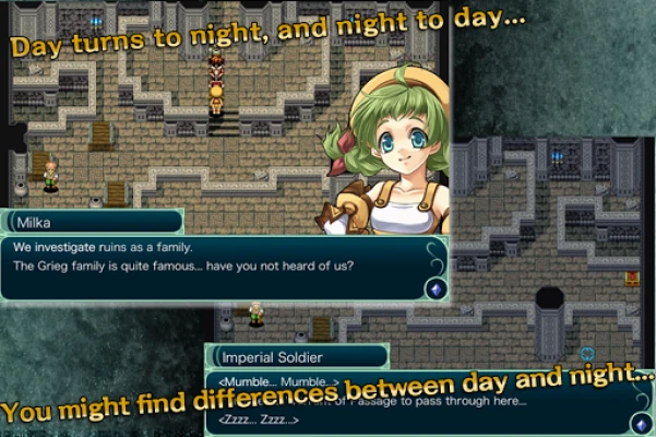As time passes, the game changes between day and night. The appearance of towns and open land, and the way the game progresses, differ between day and night.