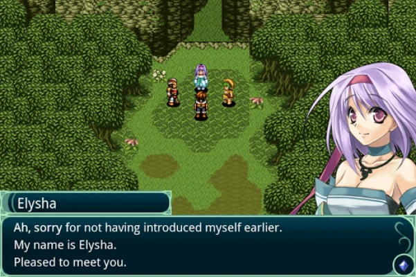 'Grinsia' is a fantasy RPG, with a quest involving twin Goddesses, and six pieces of treasure. The main characters are a family of treasure hunters, and they are joined by a wide range of other characters.