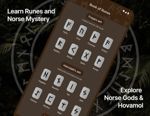 Learn runes, an ancient alphabet from the Norse era. They carry centuries of Norse heritage, mythology, and cultural meaning. With Runic Formulas, you can learn rune meanings, practice formulas and bindrunes creation, and find inspiration in old traditions - no matter your background or beliefs.