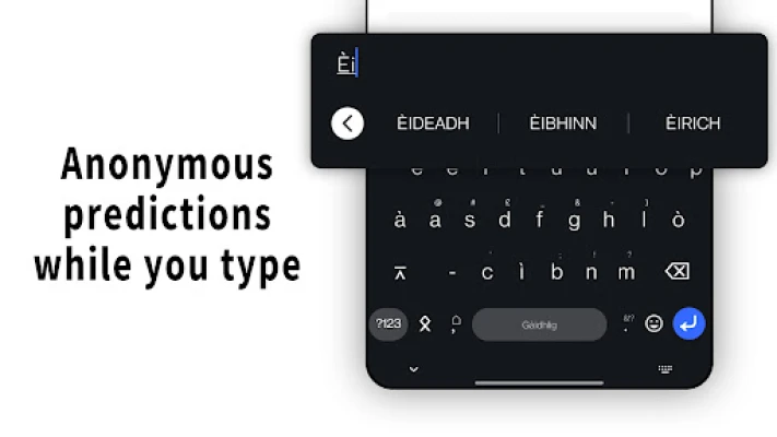 Predictions, also known as suggestions, is now available for selected languages. All predictions are completely anonymous keyboard does not use any sort of history or user data for displaying such suggestions.