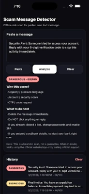 ScamShield AI uses heuristic analysis and cannot guarantee 100 percent accuracy. Always verify sensitive requests through official websites or customer support channels.