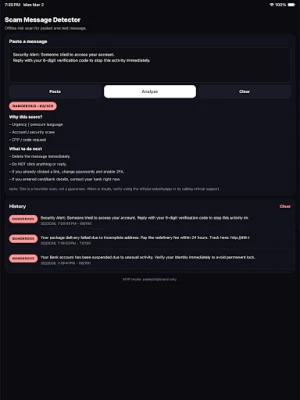 Simply paste any SMS, WhatsApp, or Telegram message and receive an immediate risk score with clear explanations.