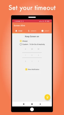 It provides an option to customize the screen lock timeout. Based on your requirements, you can choose to keep screen on always or till a specific duration of inactivity. You can toggle between the initially set timeout through system settings and the timeout chosen through app.
