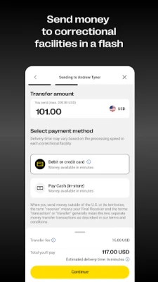 Whether your loved one is in a county jail, state prison, or federal facility, our mobile app helps you send money fast using your debit or credit card — anytime, anywhere.