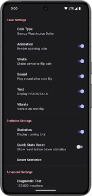 Simply tap the question mark or shake and view the result. Tap the coin or shake to spin the coin again. Verify the flip algorithm is truly random by running the built-in Diagnostic Test and flipping the coin 100,000 times (or more) while watching the results in real-time. (Sorry, no cheating!)