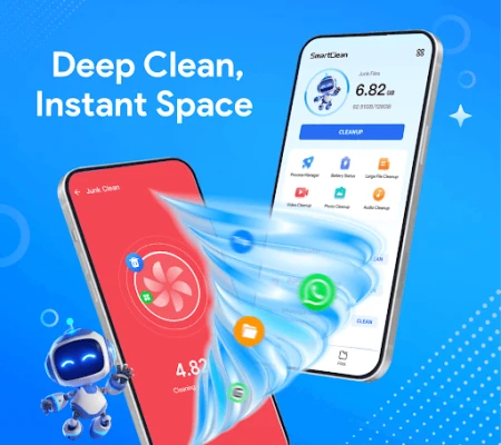Smart Clean is a powerful all-in-one tool that helps you free up storage. With Junk Cleaner and File Manager, you can easily manage your files.