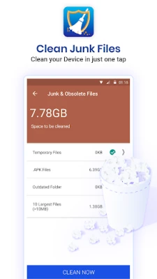 Additionally, the app offers a quick one-click junk & obsoletes clean scanner on the main dashboard that manages Android in one go. This is perfect if you don't want to use all the modules to clean your smartphone. The scanner analyses your device and frees up memory and manages your phone instantly. It also displays the amount of space used, so you can stay informed about your Android device's storage status.