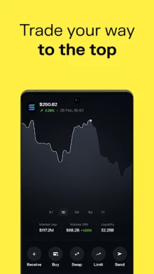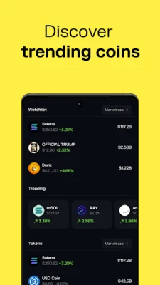 Buy coins directly through your wallet via debit/credit cards, bank transfers, or Apple and Google Pay, with another 130+ payment methods. You can purchase Solana directly in the app and quickly convert traditional currencies like USD or EUR to crypto or tokens with just a few taps.