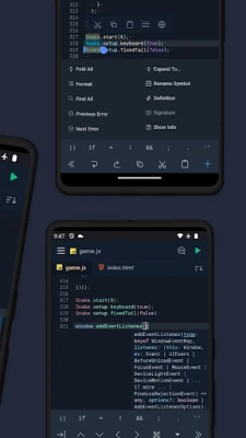 Spck Editor Lite lets you write code on your Android device. Make changes quickly with the power of TypeScript autocompletion, code snippets, and on-screen extra keyboard. Preview HTML files and debug them. Sync your changes with any git repository. Clone from Github/Gitlab/Bitbucket, AWS CodeCommit, Azure DevOps, or more, make commits and push them from your phone.