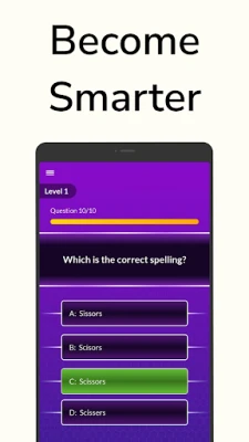 In this advanced english spelling quiz all you have to do is identify the correct spelling out of the four given options. To pass a level you will have to answer 10 correct spellings in english spelling game. Go for high-scores and become the Spelling bee!The app's user-friendly interface and intuitive design make it easy for anyone to play, whether you're a beginner or an experienced speller.