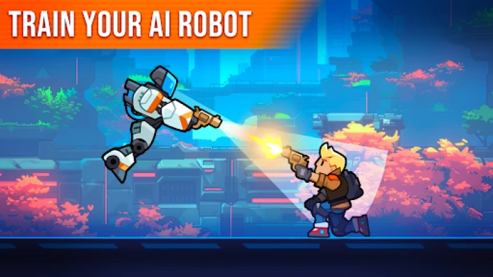 Enter a futuristic side-scrolling shooter where survival depends on you and the AI robot at your side.