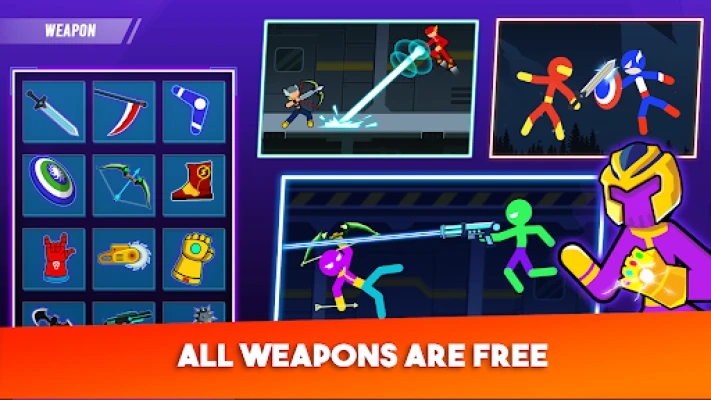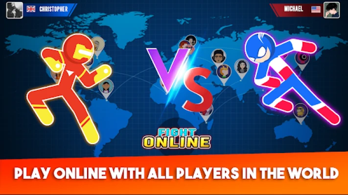 Players may select their Stickman Super Heroes, who they love most, upgrade their ultimate power as much as possible, compete in the tournament of all maps, and rise to the top of the global standings.