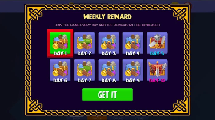 • Daily rewards that help unlock items, improve combat strength, and progress faster.
