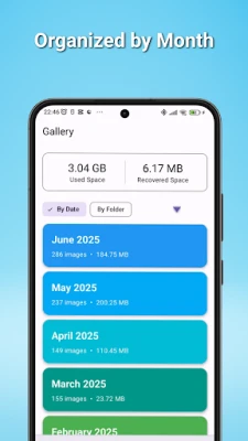 - Organize your photos by month to easily tackle recent pictures first. See photos from today, yesterday, this week, and previous months in a clear, organized list.