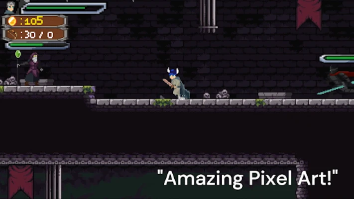 Immerse yourself in beautifully designed pixel art visuals that blend nostalgia with modern animation flair. Every detail is crafted to bring the Sword Master's world to life.