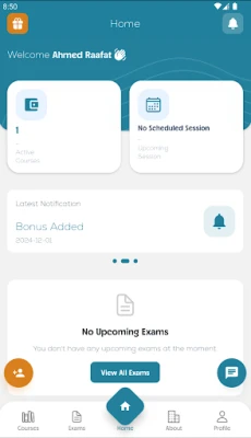 - Personalized Dashboard: Quick access to upcoming sessions, new exams, and course overviews.