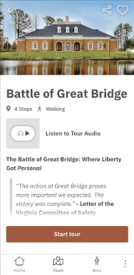Virginia stood at the heart of America’s struggle for independence, serving as both a battleground and a birthplace for revolutionary ideals. Here, the "cause of liberty” moved from words to action. The Liberty Trail Virginia invites you to experience this defining chapter of American history through immersive tours of pivotal Revolutionary War sites. The Liberty Trail Virginia's tour collection includes: - Siege of Yorktown - Battle of Great Bridge - Battle of Gwynn's Island - Battle of Hampton - Battle of Kemp's Landing - Burning of Norfolk - and more tours coming soon!