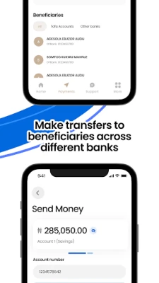 • Send money to other Tofa MFB users and other Nigerian banks.