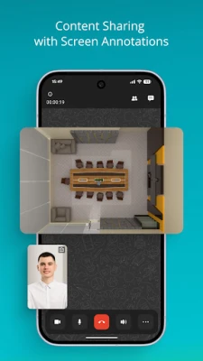 • Screen sharing. Share your smartphone screen with colleagues and use drawing tools to collaborate jointly on content or provide remote assistance.