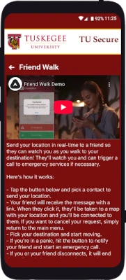 - Safety Notifications: Receive instant notifications and instructions from Tuskegee University safety when on-campus emergencies occur.