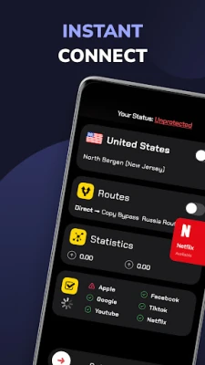 Effortlessly select individual apps-like Facebook, Instagram, TikTok, YouTube, and more-to route through the proxy or bypass, keeping you secure where needed and unrestricted where you prefer.