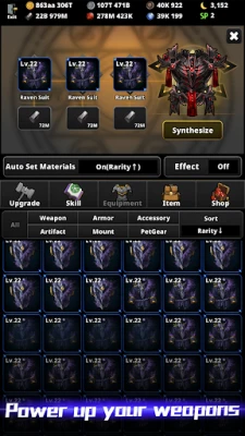 Synthesize four pieces of equipment of the same tier to enhance the equipment's tier.