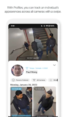 With the Verkada mobile app, you can access all your Verkada cameras in a single view, and your entire cloud-based footage history is just a swipe away. With industry-redefining tech, Verkada enables you to quickly filter and identify individuals, and track them across your organization's cameras. The future of enterprise security is in your hands.
