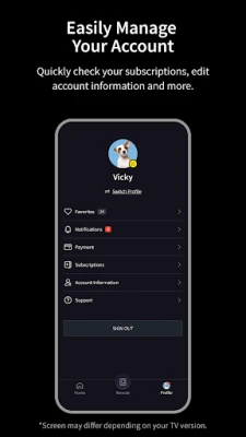 It provides all of the functions of your TV remote and more. Key Features: - Power On / Off - Volume Control - Change Channel - Share Video / Music / Photo to TV - Search VoD