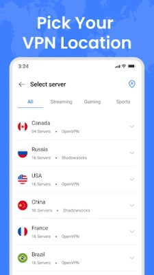 🔸 Choose between OpenVPN and Shadowsocks protocols for connection.