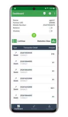 Agents App provides services to customers and merchants like customer deposit and withdrawal. merchant deposit , reseller deposit and banking transactions.
