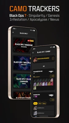 Track your progress unlocking mastery camos in our advanced Camo Hub, covering Black Ops 7 Mastery camos (Singularity, Infestation, Genesis, Apocalypse, Nexus Horizon), Prestige camo trackers, MW3/MWZ camos, MW2 camos and all recent titles.