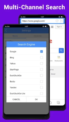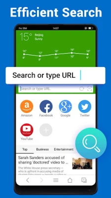 - Quick search: Google, Yahoo, Bing, and other default search engines
