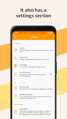 Obtain the signal strength of the WiFi network to which you are connected and the WiFi networks that surround it. This is useful so you can find good areas to connect to WiFi networks. In addition to the signal strength of the WiFi network, other relevant features can be observed, such as the MAC address, the WiFi network security, BSSID, etc.