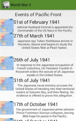 The aim is to explain the different events of the history ordered by the countries that took part on the battle, the different fronts opened during the war and the different battles.