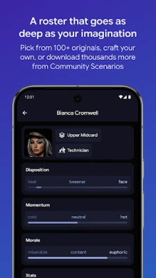 Design your own wrestling universe or download scenarios created by the community. Customize promotions, championships, shows, and rosters, then share your creations with players worldwide.