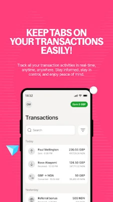 • Real-time tracking in-app for every transaction